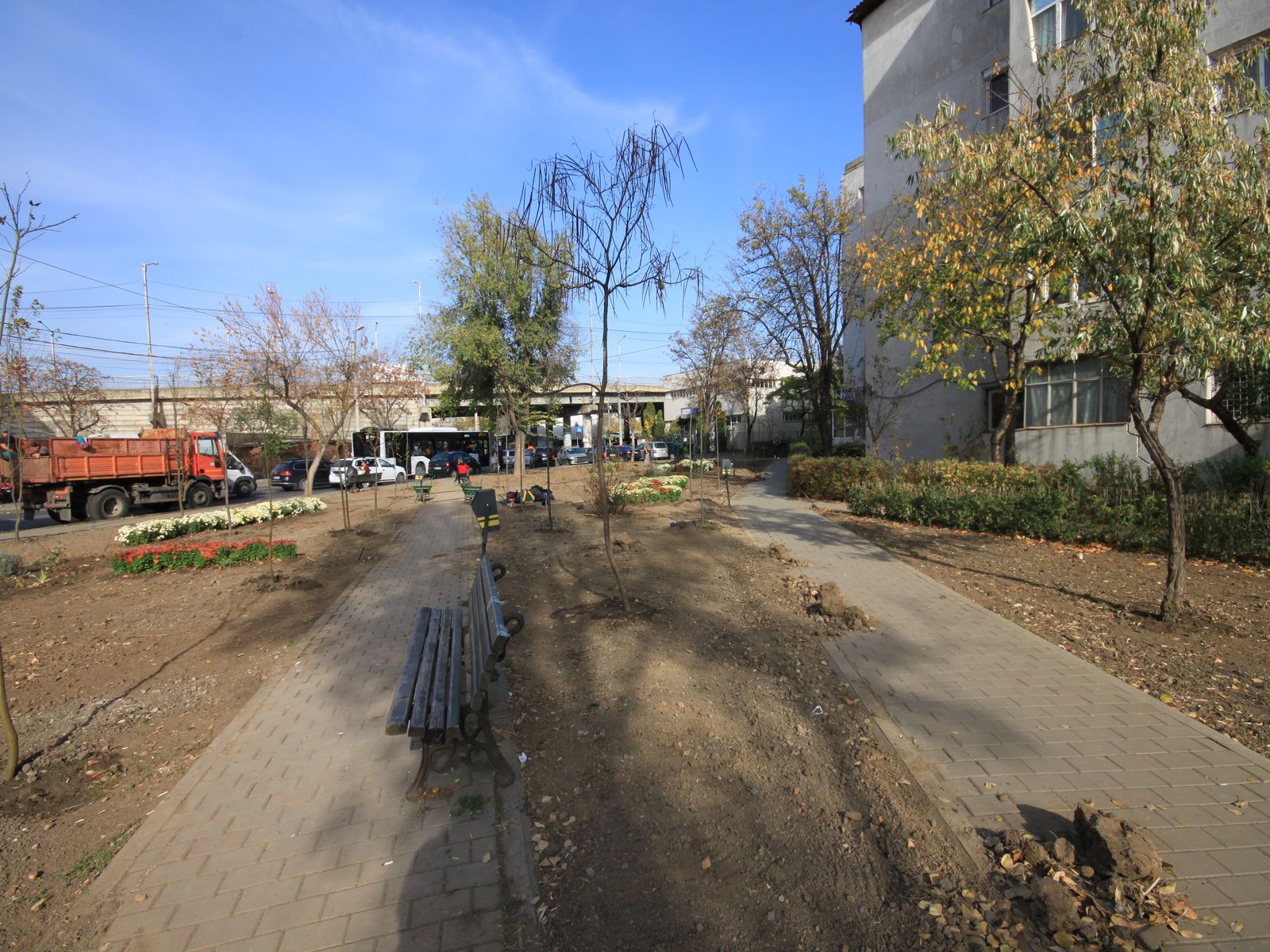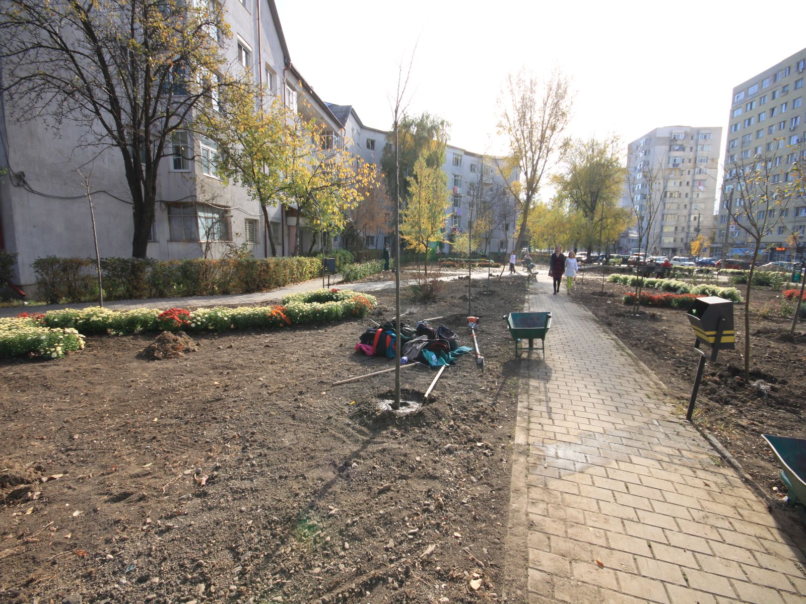 - Instalare mobilier urban (bănci, coșuri de gunoi);