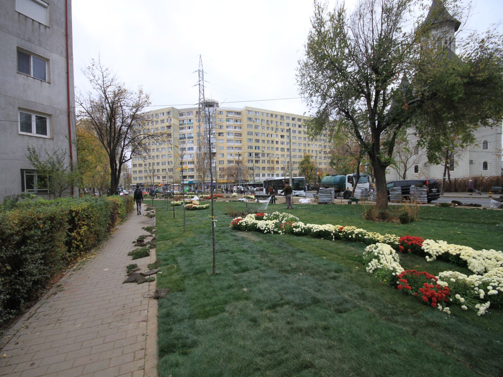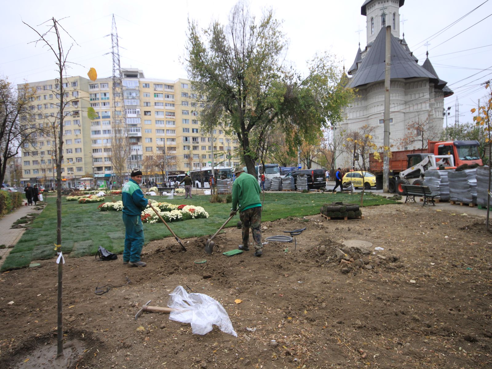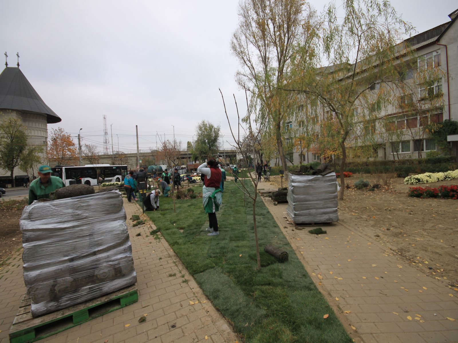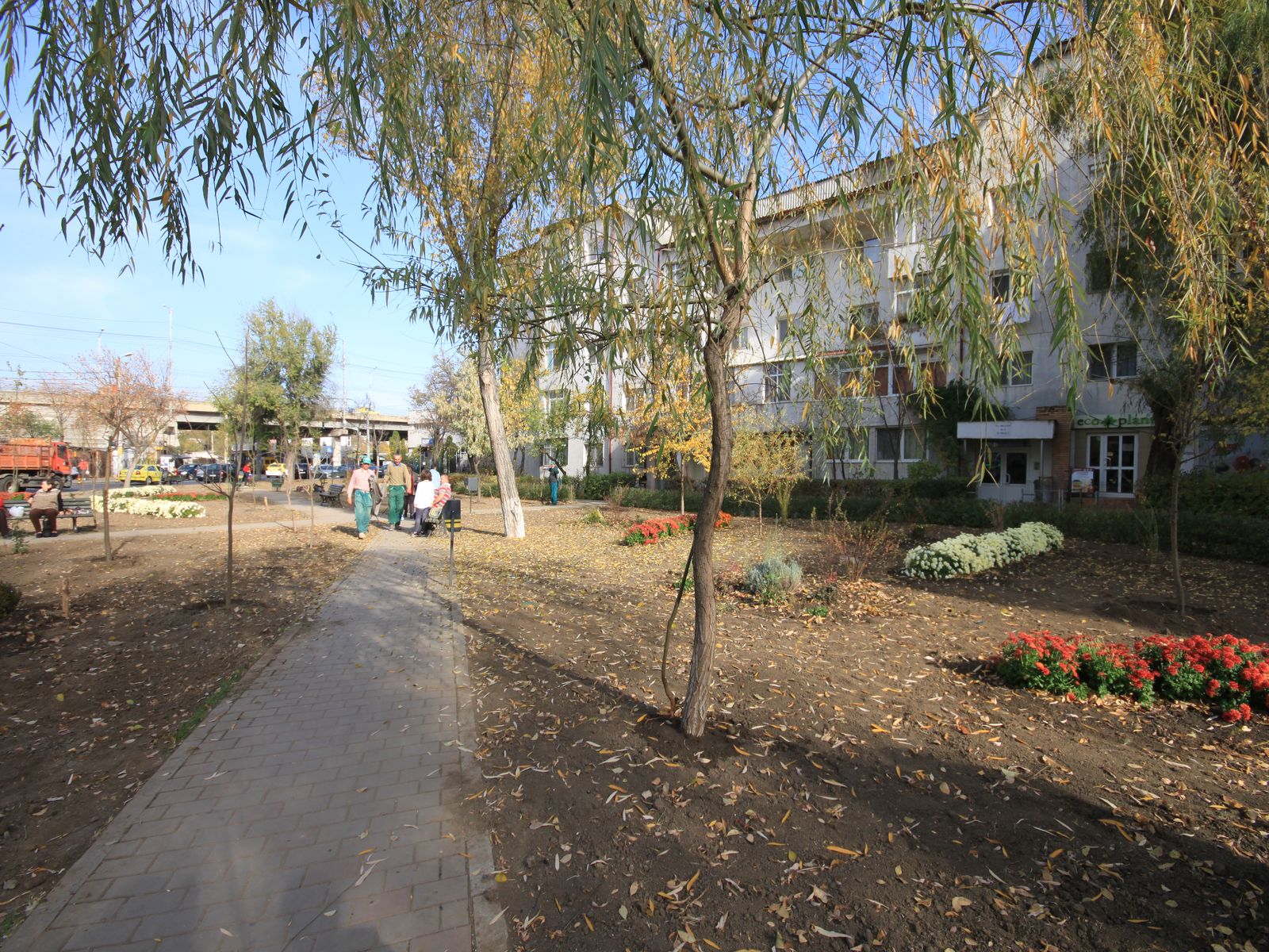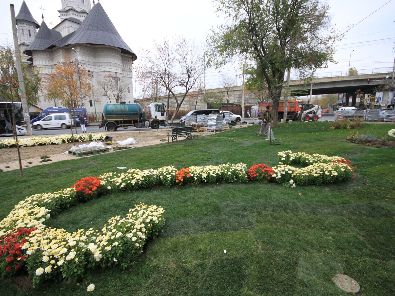 - Plantarea materialului dendrofloricol (arbuști, flori perene și de sezon cu frunziș colorat);